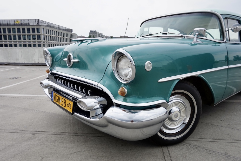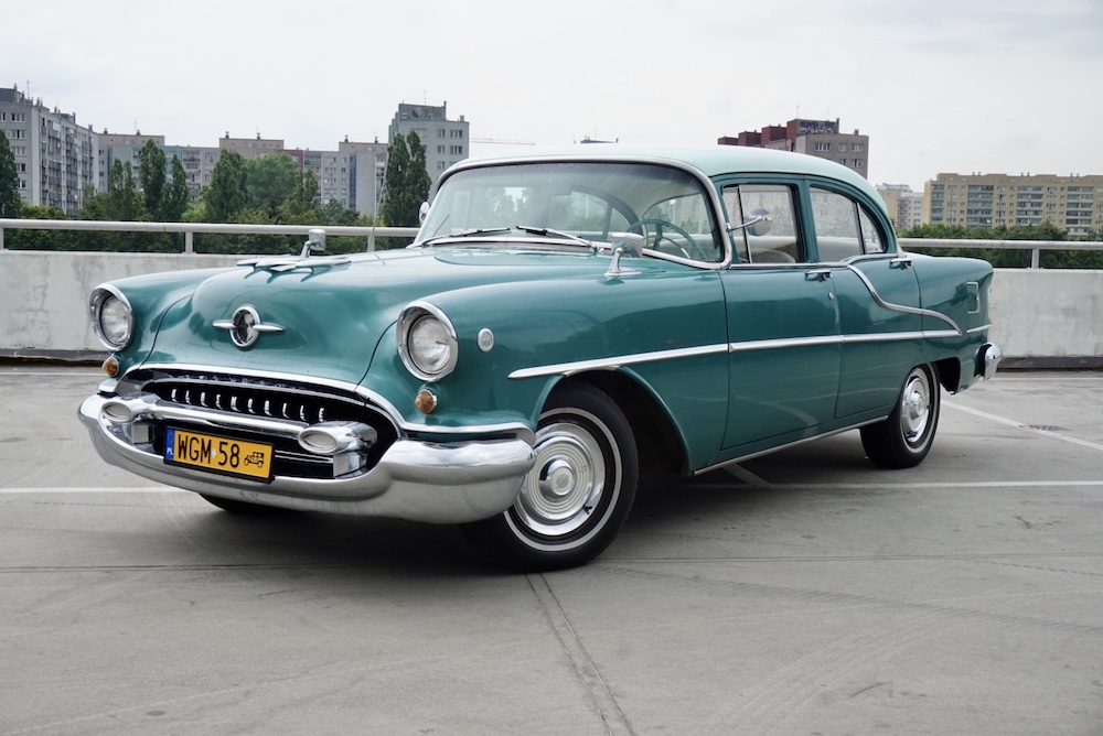 Oldsmobile 88 z 1955 roku ma również ciekawą historię, ponieważ brało udział w reklamie biżuterii, gdzie pojawiła się żona Roberta Lewandowskiego.