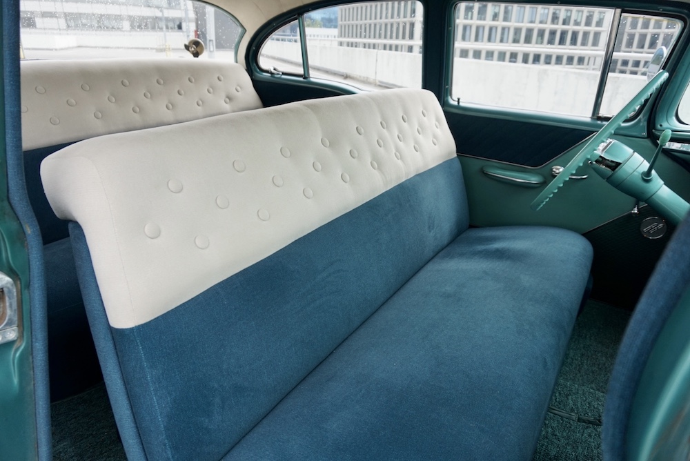 W 2020 roku wnętrze Oldsmobile przeszło kompleksową renowację. Oryginalne poszycie tapicerskie pozostało na większości boczków oraz dolnych partiach słupków B. Podczas demontażu tapicerki dokładnie zweryfikowano stan blacharski podłogi i dachu, który okazał się bardzo dobry.