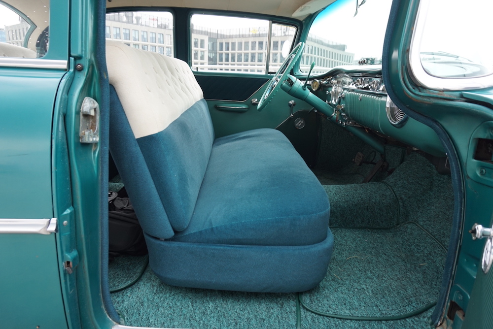 Z przyjemnością prezentujemy ofertę sprzedaży unikatowego Oldsmobile 88 z 1955 roku, który zachwyca swoim całkowicie oryginalnym stanem zachowania. Samochód posiada jednowarstwową powłokę lakierniczą w pięknym zielonym metallicu.
